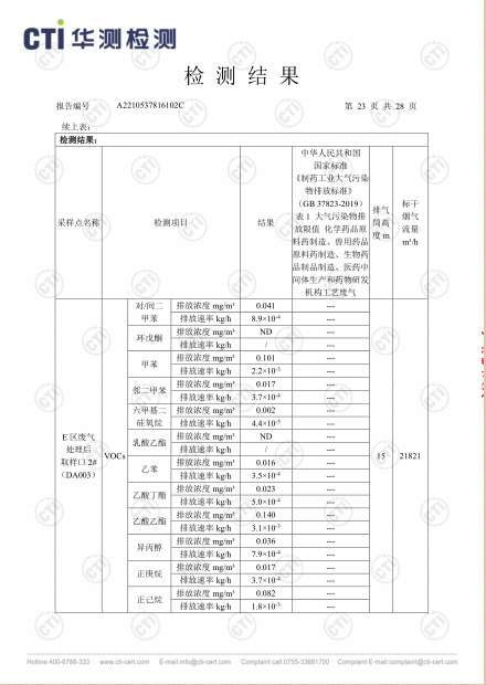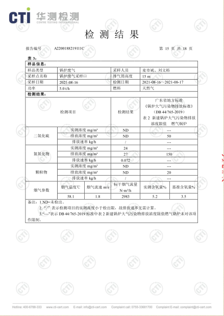 新宝gg创造奇迹废气检测报告(2021年8月全检)