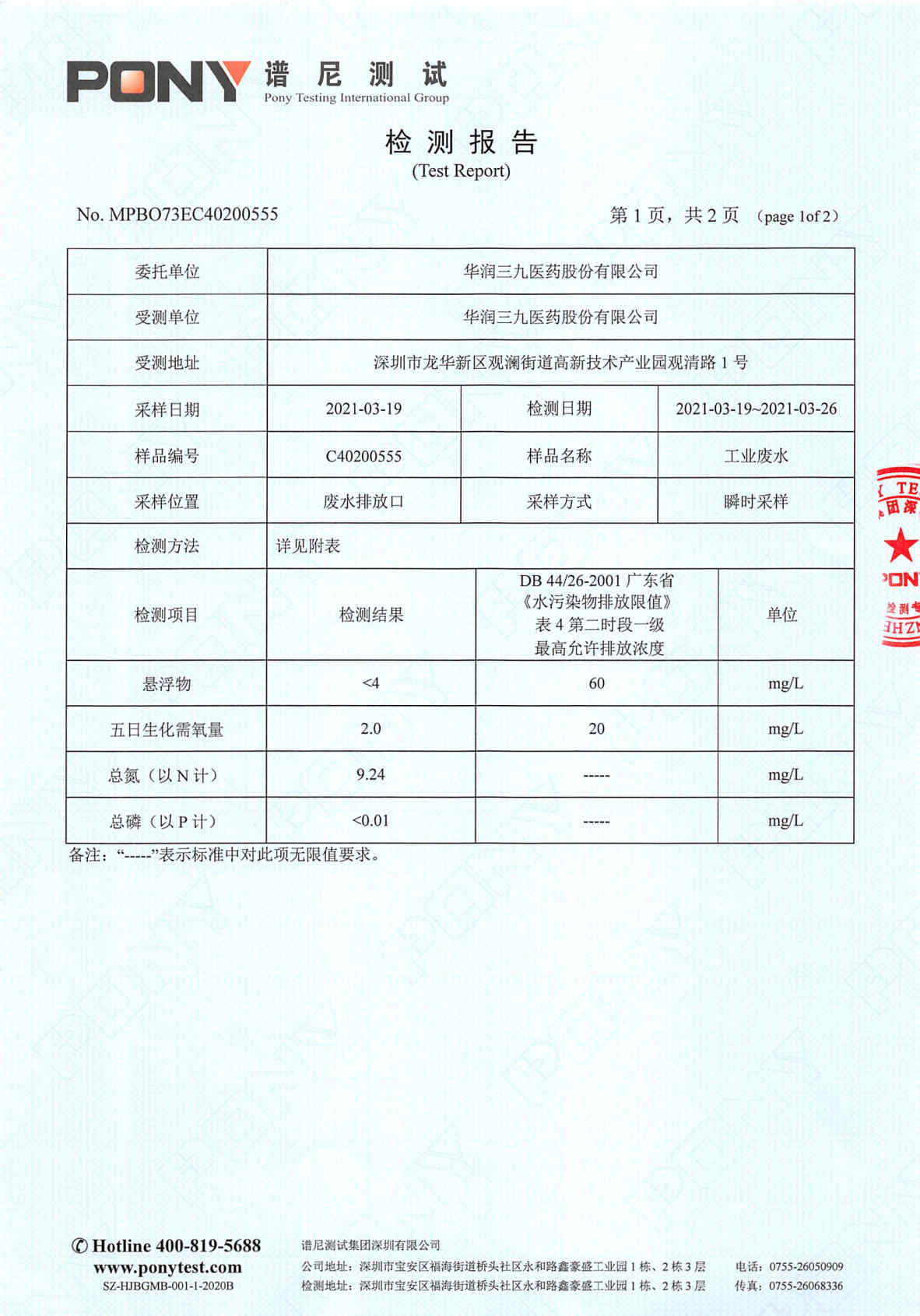 新宝gg创造奇迹废水检测报告(2021年3月)