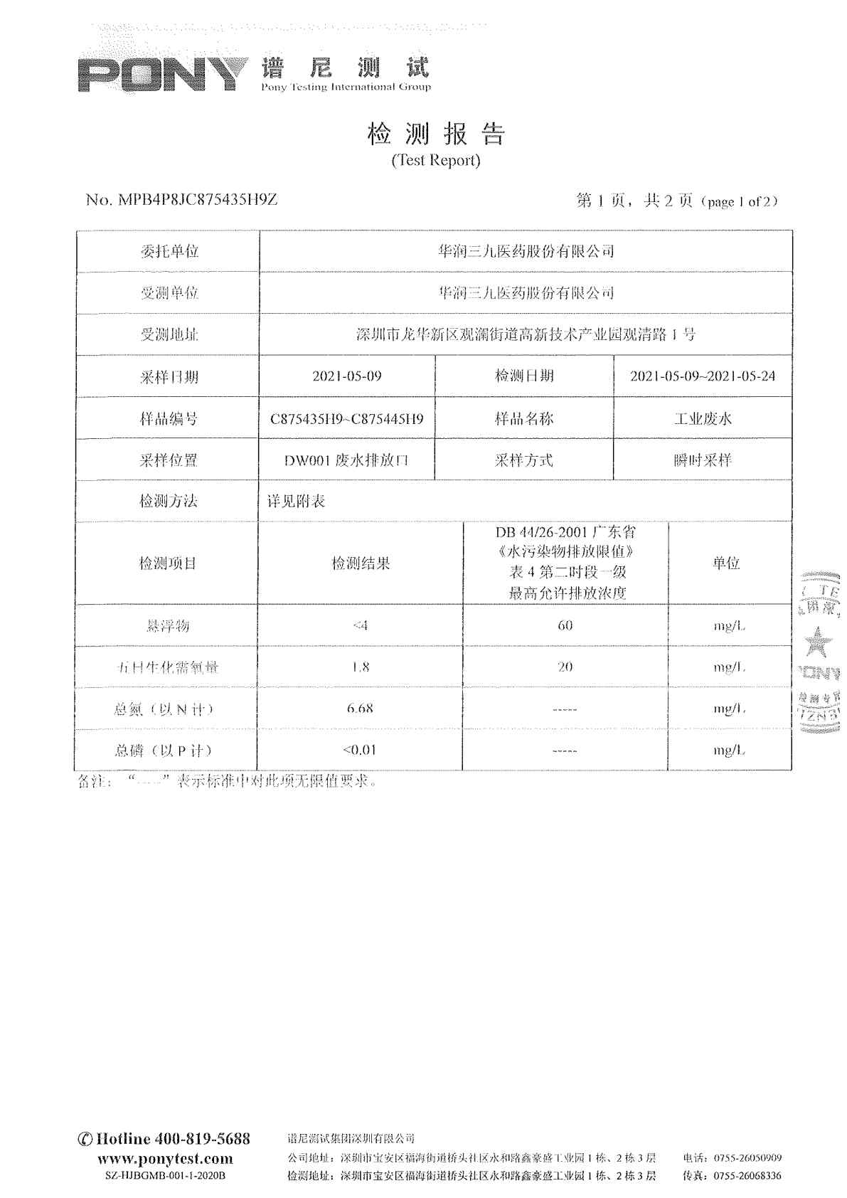 新宝gg创造奇迹废水检测报告(2021年5月)