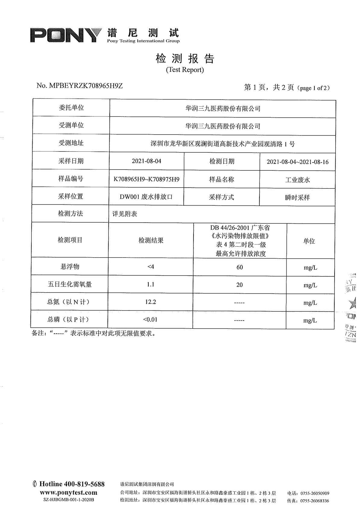 新宝gg创造奇迹废水检测报告(2021年8月)