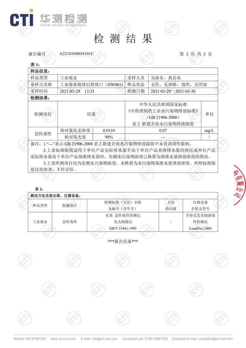 新宝gg创造奇迹废水检测报告(2021年3月毒性)