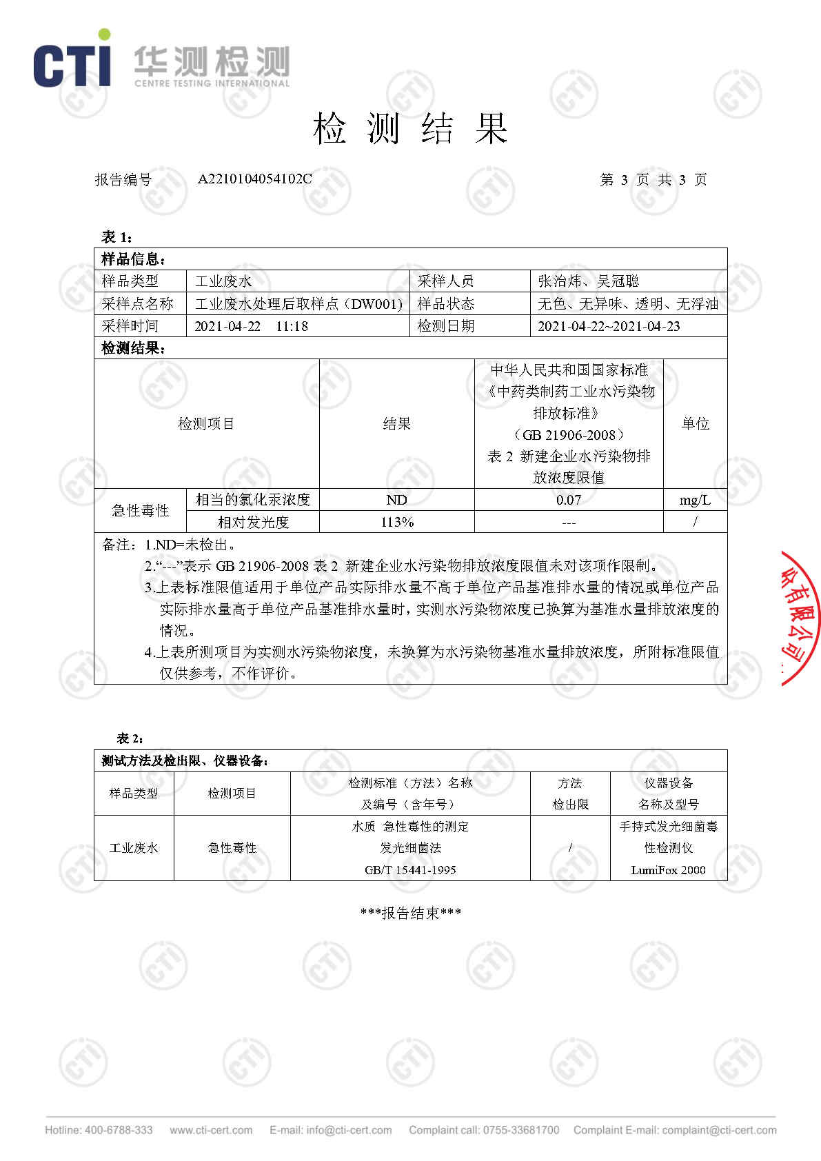 新宝gg创造奇迹废水检测报告(2021年4月毒性)