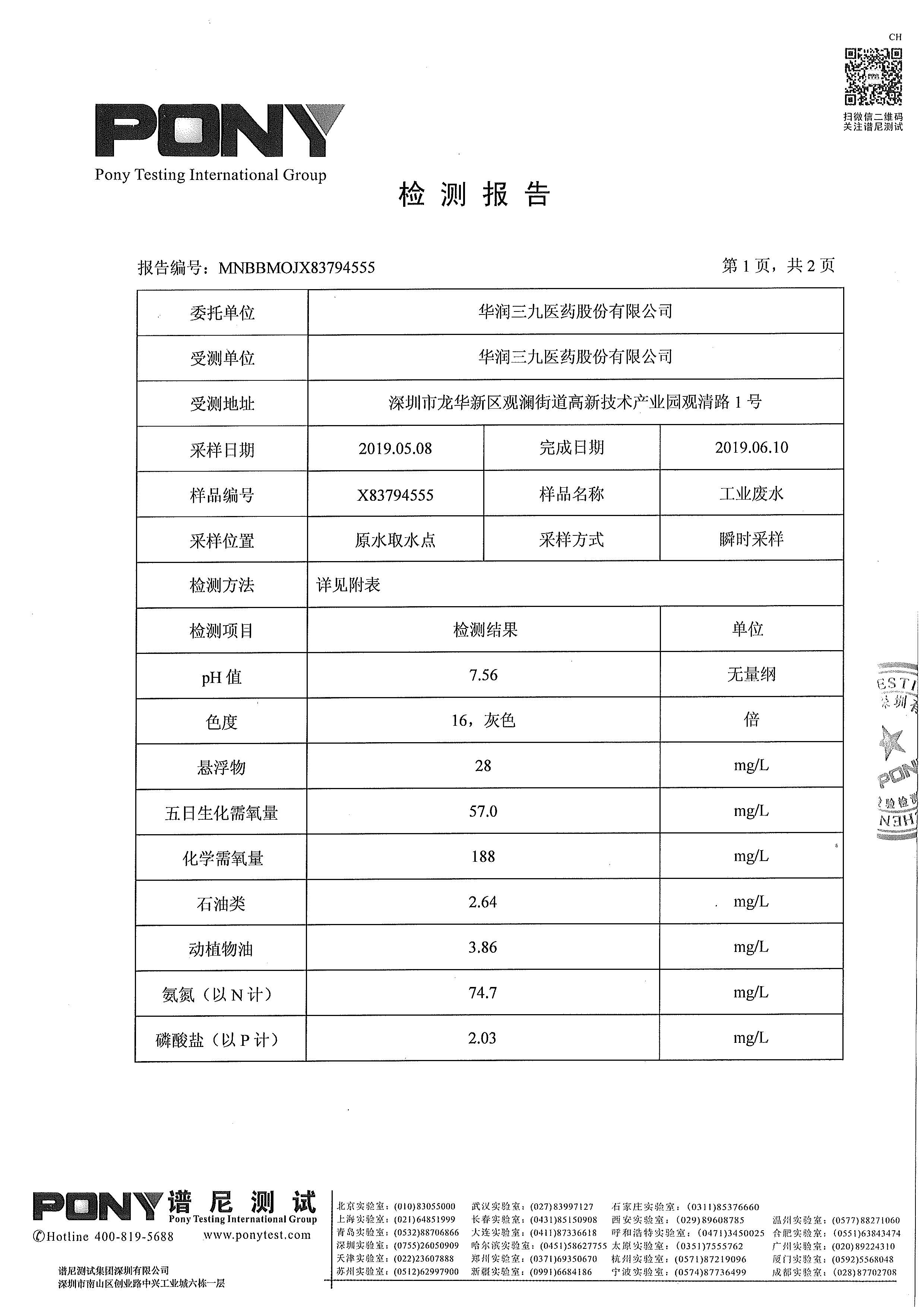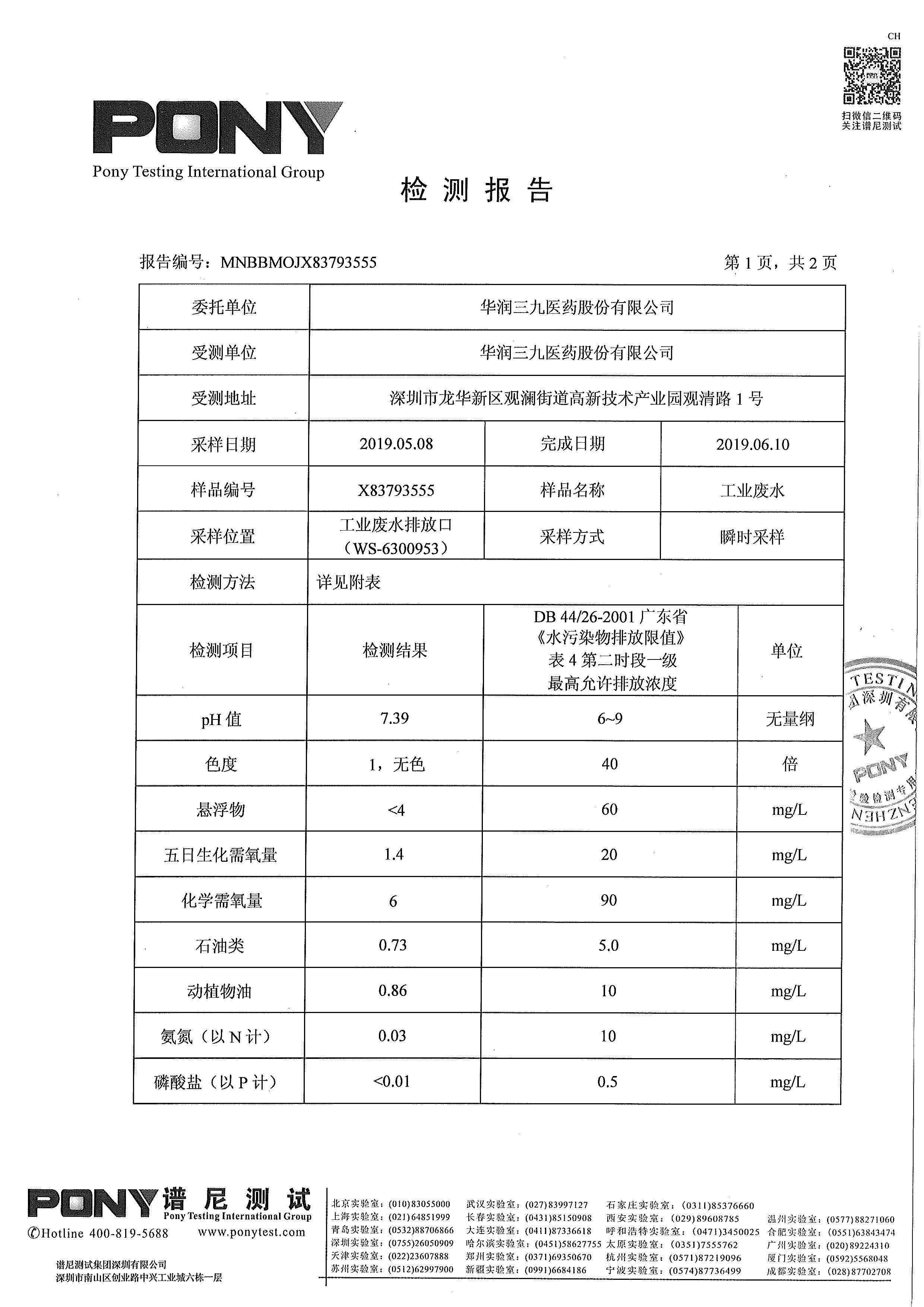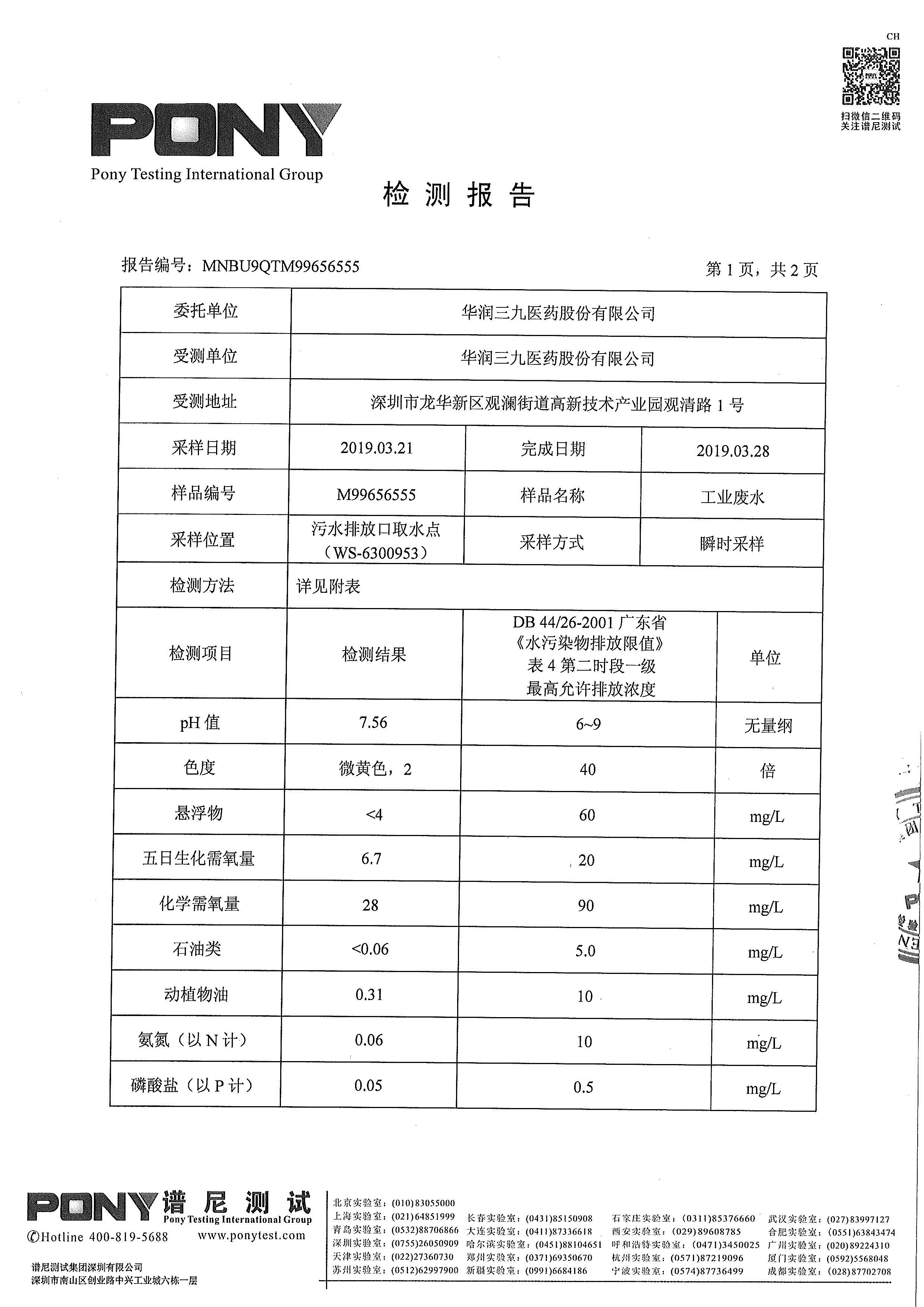 新宝gg创造奇迹废水检测报告(2019年3月)