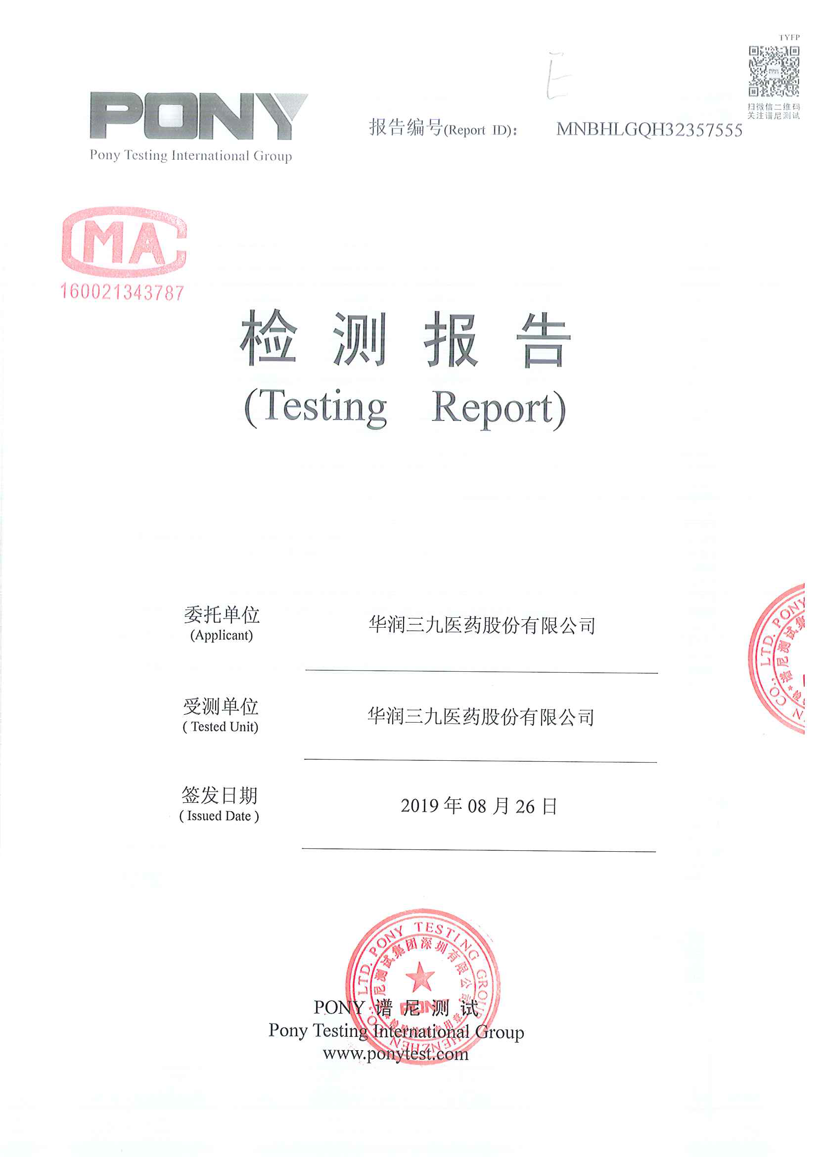 新宝gg创造奇迹废水检测报告(2019年8月)