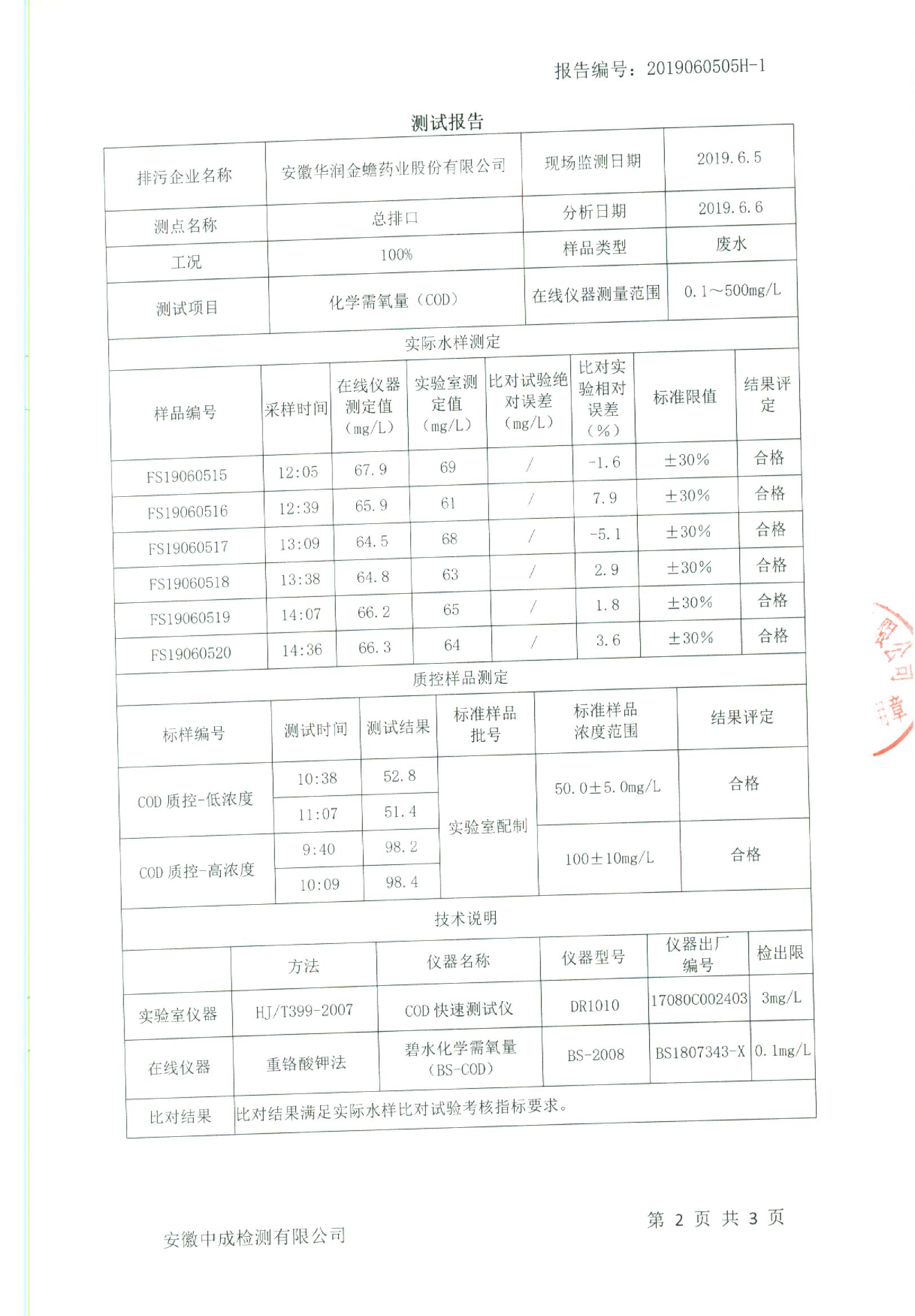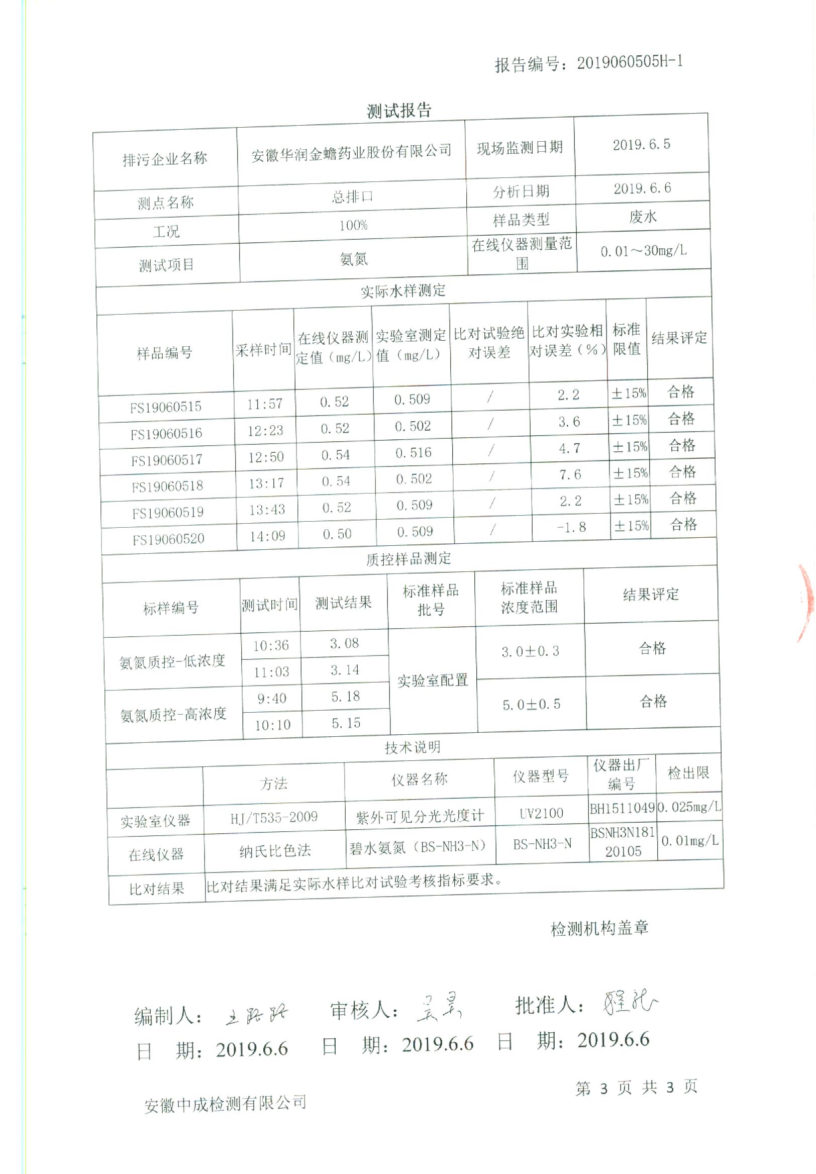 ¸½¼þ1.ÉîÛÚ»ªÈó¾ÅÐÂÒ©ÒµÓÐÏÞ¹«Ë¾·ÏÆø´¦Öóͷ£ÉèÊ©ÏîÄ¿Í깤ÇéÐα£»¤ÑéÊÕ¼à²â±¨¸æ±í