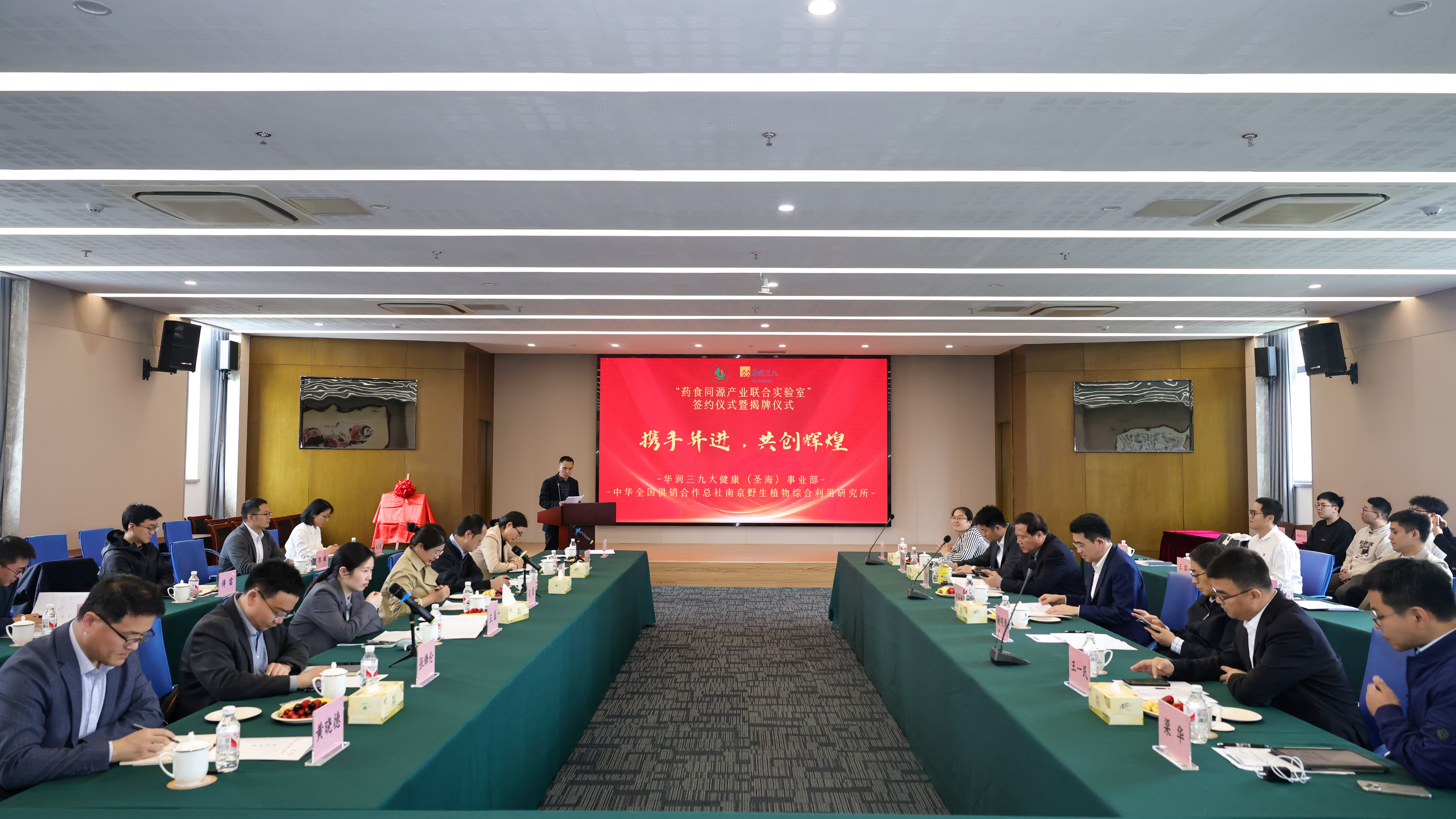 4月11日,新宝gg创造奇迹大康健(圣海)事业部与中华天下供销合作总社南京野生植物综合使用研究所“药食同源工业团结实验室”签约暨揭牌仪式在南京举行,双方代表签署战略合作协议,新宝gg创造奇迹董事长邱华伟与二级研究员张卫明配合揭牌“药食同源工业团结实验室”。
