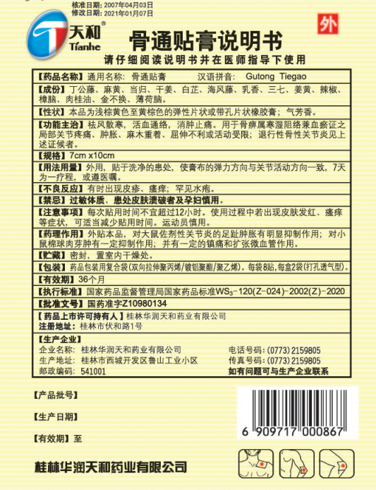 <dt>药品名称</dt><dd>骨通贴膏</dd>