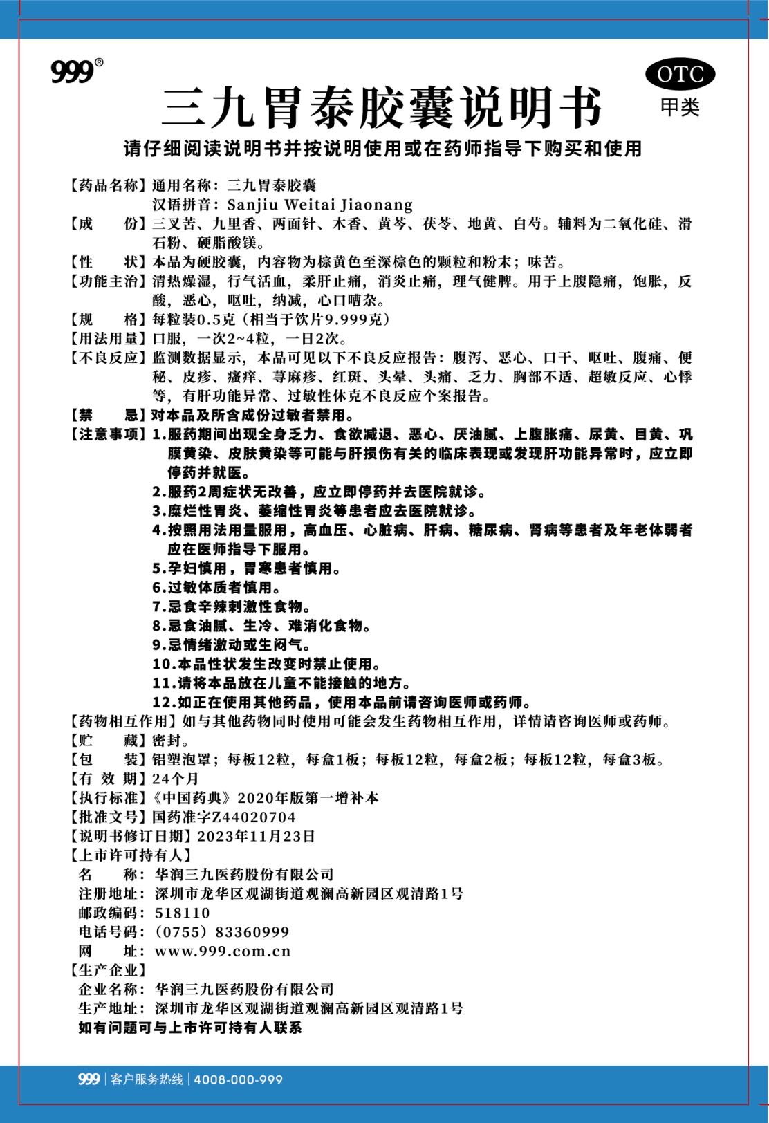 三九胃泰胶囊说明书[观澜2401版]