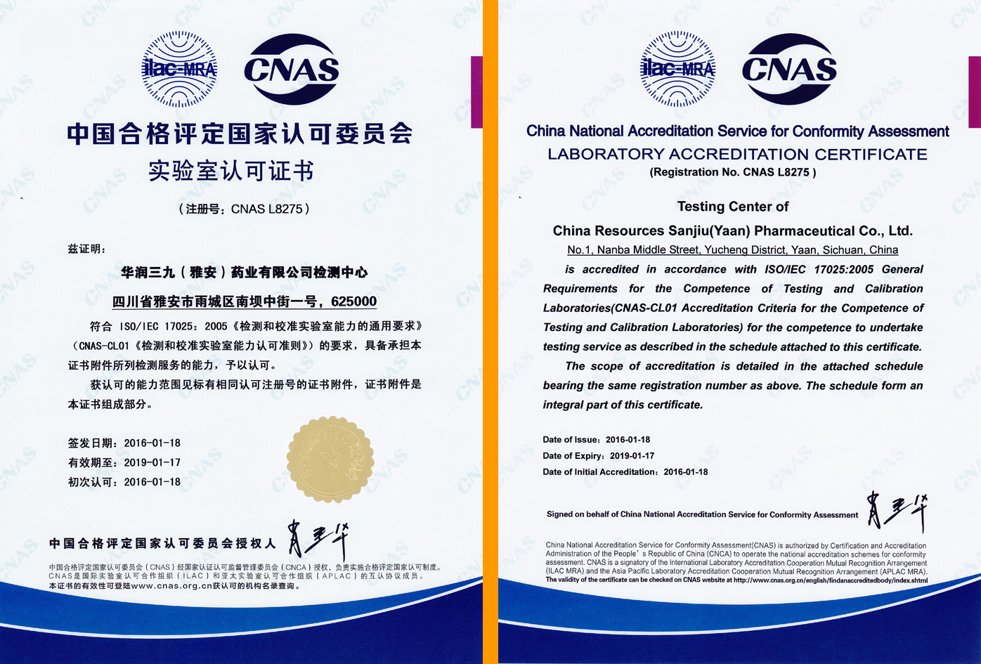 新年伊始 ,中国及格评定国家认可委员会(简称:CNAS)正式批准新宝gg创造奇迹(雅安)有限公司检测中心通过实验室认可 ,列入获认可检测和校准实验室名录 ,认可证书(注册编号:L8275)已于2月4日寄达新宝gg创造奇迹(雅安) 。