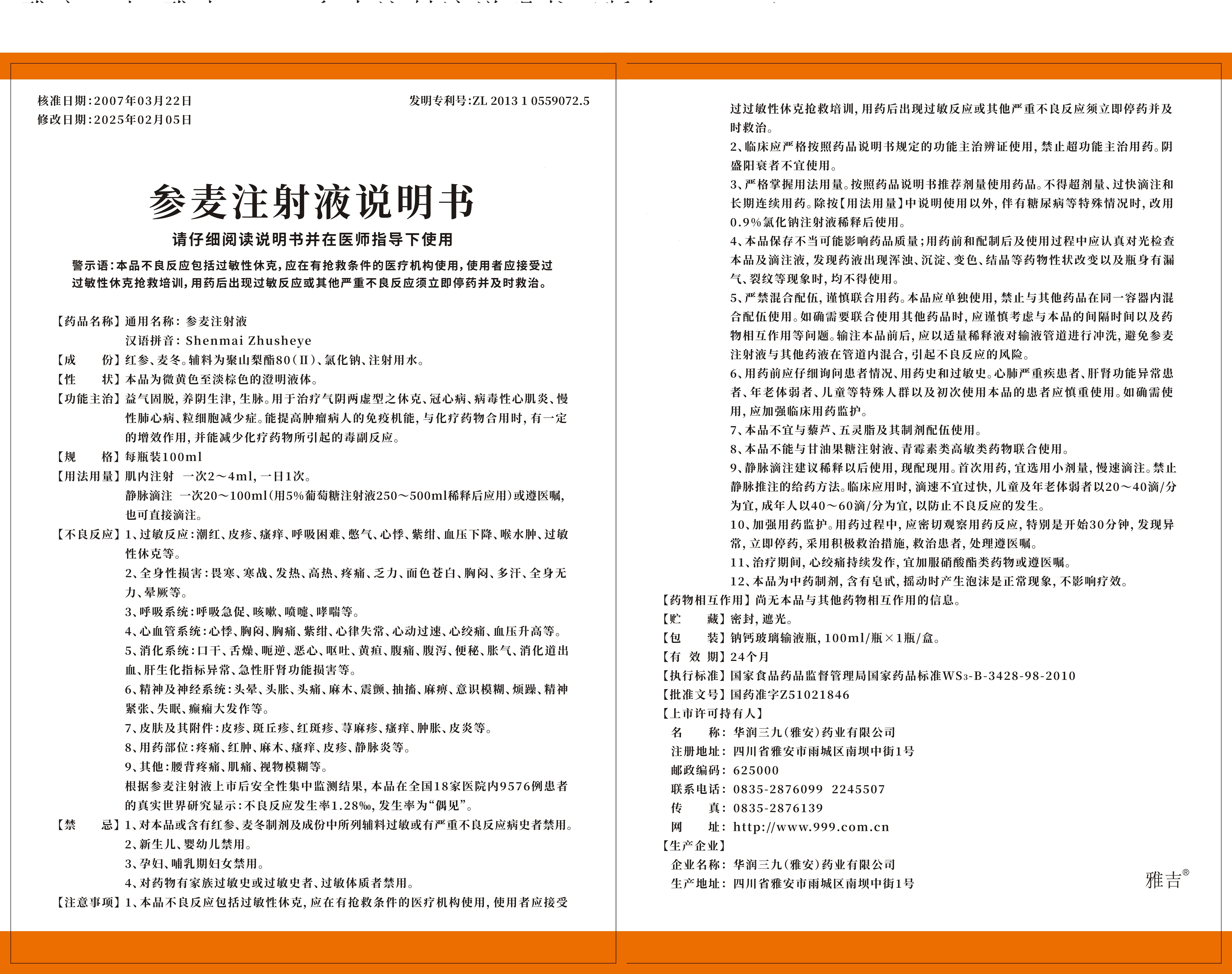 参麦注射液100ml
